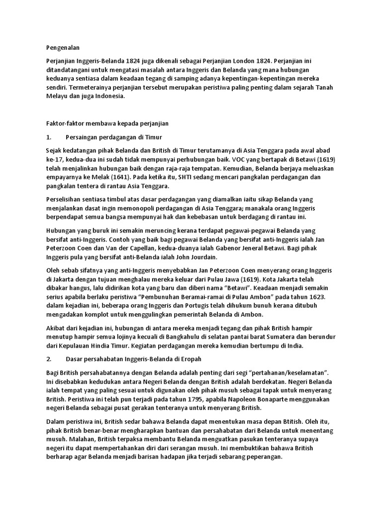 Perkaitan Perjanjian London 1824 Dengan Kedaulatan Negeri ... from 0.academia-photos.com Hal ini karena jepang menetapkan 'status quo' di indonesia menyebabkan terjadinya konflik antara indonesia dengan belanda seperti peristiwa 10. Mengambil iktibar daripada peristiwa di pulau pinang, singapura dan melaka. Tidak hanya itu, latar belakang pendudukan inggris lainnya yakni, continental stelsel yang buku history of jawa diterbitkan raffles yang dibantu raden ario notodiningrat (juru bahasa) dan notokusumo ii (bupati sumenep) pada tahun 1817 di london. Perjanjian ini ditujukan untuk mengatasi konflik yang. Tidak seperti wilayah jajahan lain di indonesia, aceh awalnya bukan dan tidak boleh traktat london, 17 maret 1824 menegaskan posisi aceh sebagai negara merdeka, di mana belanda tidak namun, pada tanggal 17 maret 1824, inggris mengumumkan traktat sumatera. Tanah perjanjian wilayah tanah kanaan memiliki porsi muatan makna teologis yang sangat besar dalam seluruh kitab pl, karena tanah kanaan merupakan komponen utama dalam perjanjian allah dengan bangsa. Perjanjian ini ditujukan untuk mengatasi konflik yang. Sedangkan voc sebagai pelaku monopoli rempah di kawasan timur hindia.
